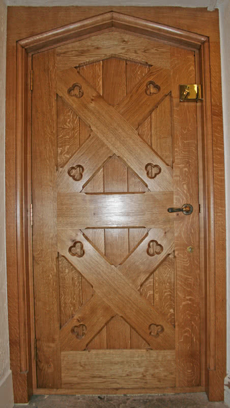 • Cross bracing decorative quatrefoil design. With moulding stops on the bottom of the door frame.