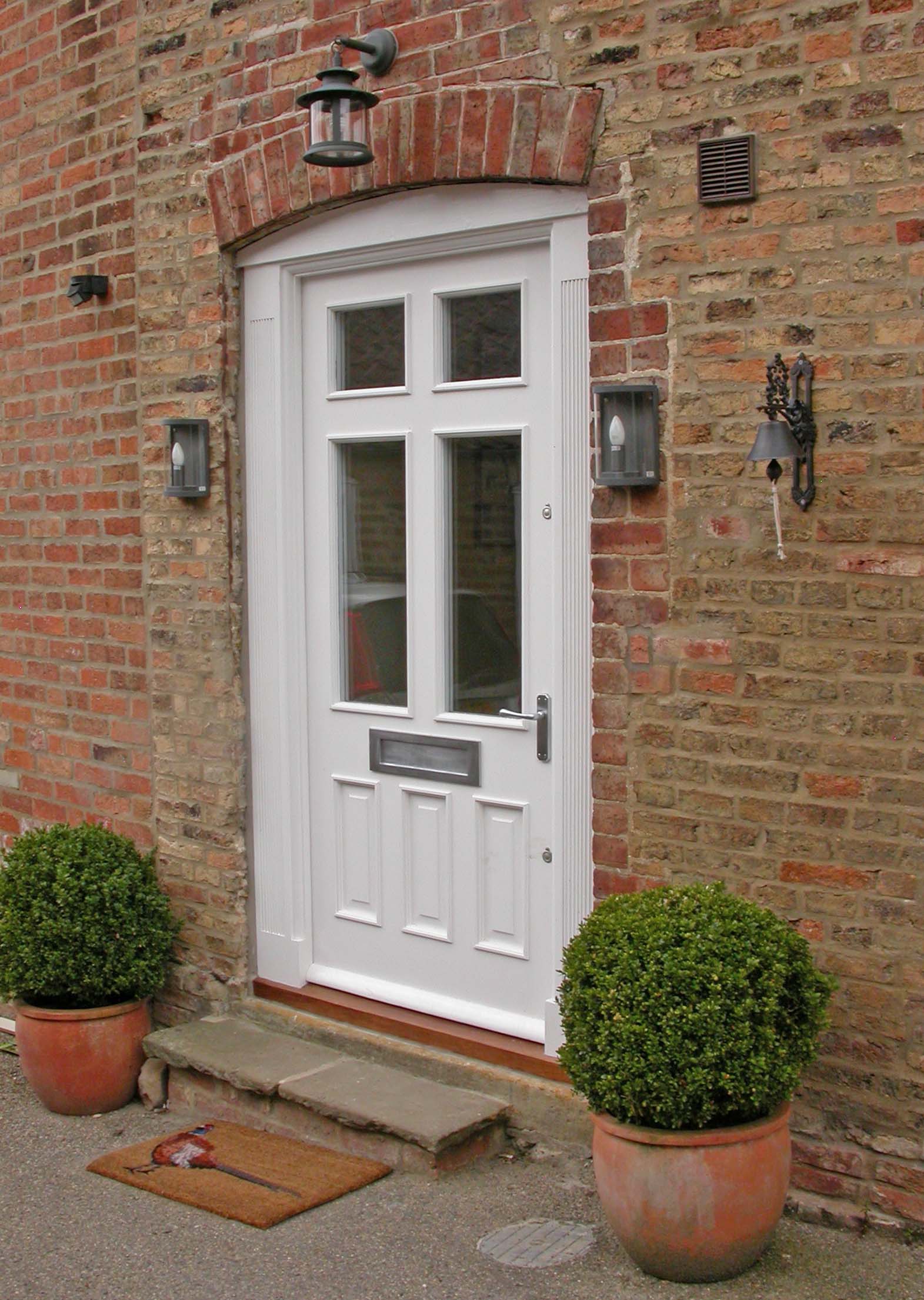 - Meranti hardwood door with four double glazed windows and with three raised panels.